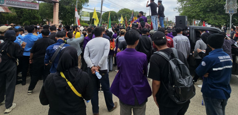SELASAR.CO, Tenggarong - Aksi unjuk rasa mahasiswa di depan Gedung Dewan Perwakilan Rakyat Daerah (DPRD) Kutai Kartanegara (Kukar), pada Senin (1/9/2025) berlangsung dengan tertib dan damai.