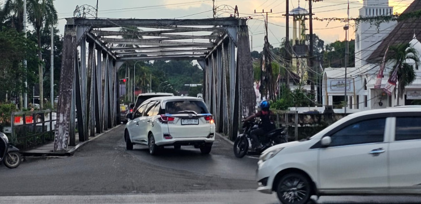 "Jembatan besi kita tutup. Karena itu posisinya sudah keropos, enggak boleh lagi dilewati kendaraan. Kalau kendaraan kecil saat ini masih bisa, tapi kalau kendaraan berat bisa membahayakan," pungkasnya.