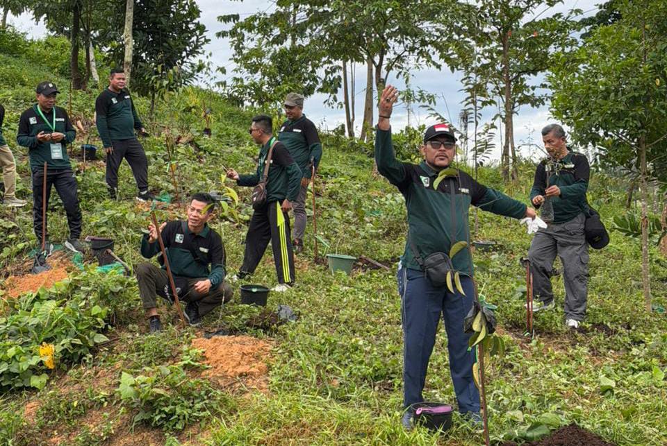 Ratusan bibit pohon ditanam serentak di sekitar area hijau IKN. Para peserta terdiri dari pengurus KAHMI wilayah, alumni HMI lintas generasi, serta sejumlah pejabat daerah. Sebagian membawa cangkul dan ember air kecil, menanam sambil berfoto bersama.
