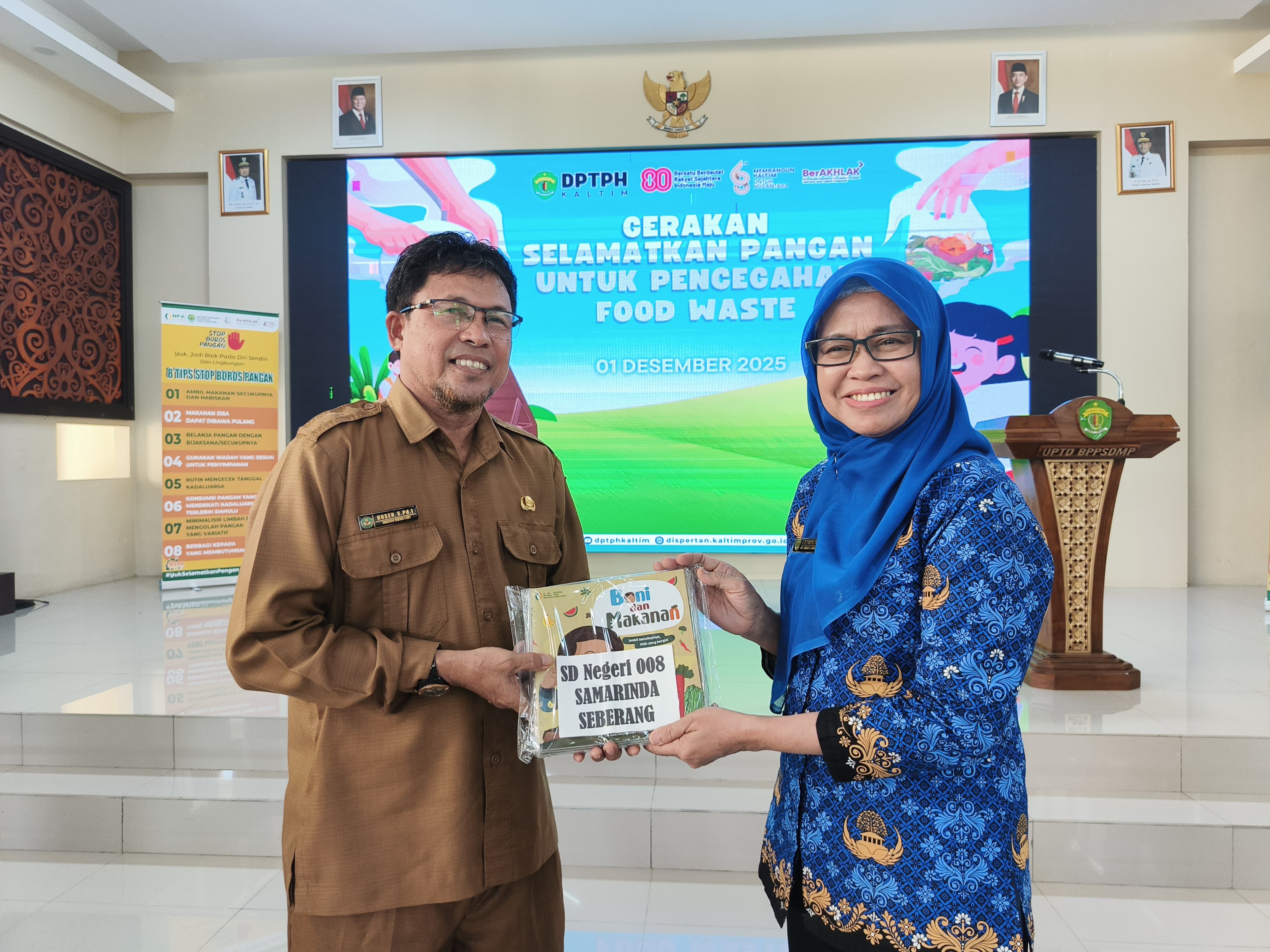 SELASAR.CO, Samarinda - Pemerintah Provinsi Kalimantan Timur menggelar kegiatan Koordinasi, Sosialisasi, dan Edukasi Gerakan Selamatkan Pangan (GSP) sekaligus penyerahan buku cerita edukasi “Boni dan Makanan” dalam rangka pelaksanaan Program Makan Bergizi Gratis (MBG) Tahun 2025. Kegiatan tersebut berlangsung di Aula UPTD BPSDMP Provinsi Kaltim, Samarinda, Senin (1/12/2025).